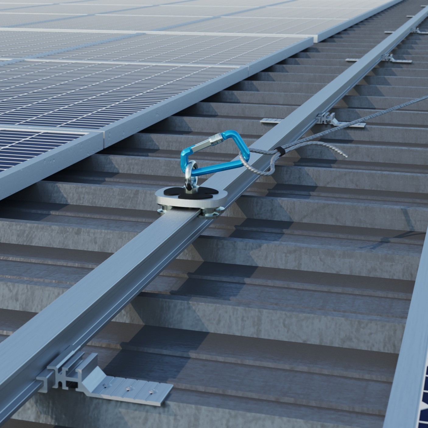 Il binario anticaduta è adatto a linee vita rigide orizzontali. Grazie alla flessibilità del materiale, il profilo può seguire perfettamente curve e pendenze di qualsiasi copertura. Il sistema è realizzato su misura in alluminio 6063 secondo il progetto.
